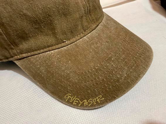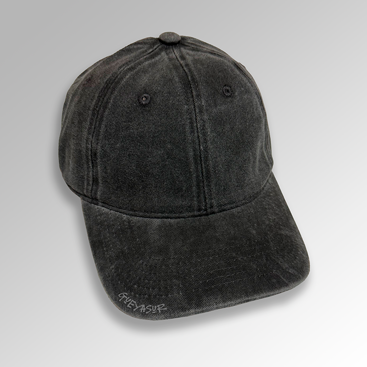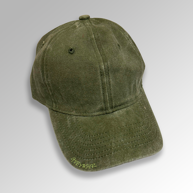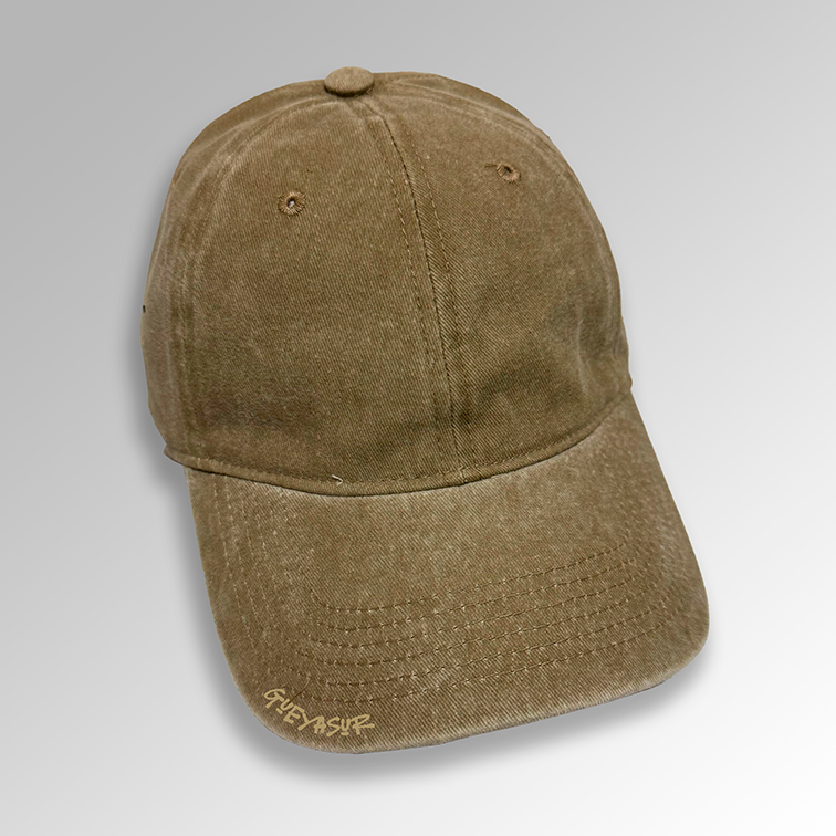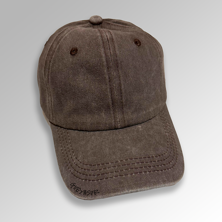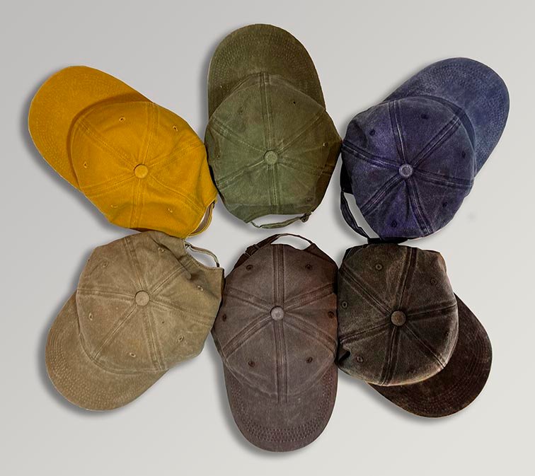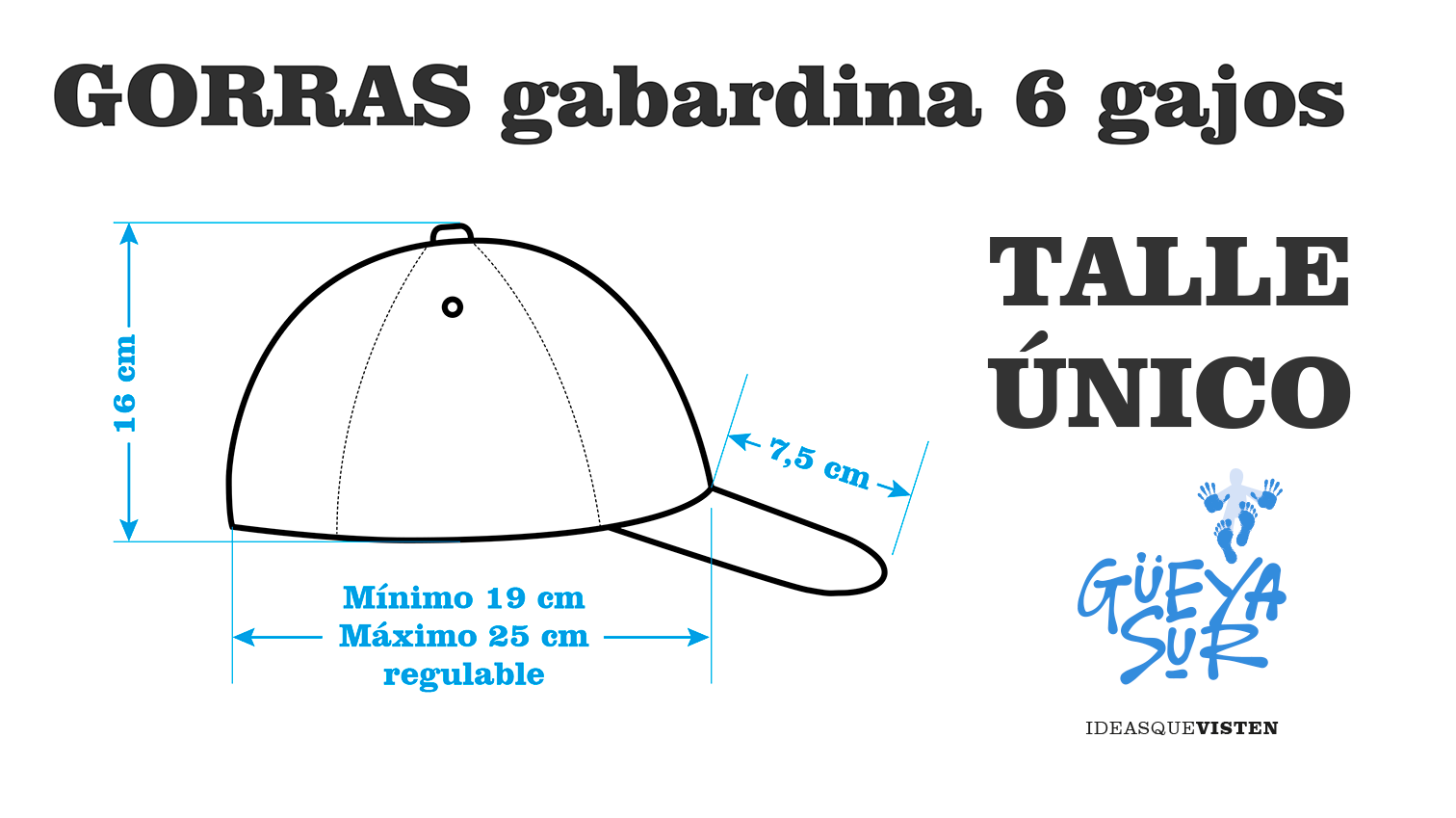 Gorra de 6 gajos realizada en gabardina gastada, talle único, regulable en medidas. Cuidado y lavado: No lavar a Máquina, no usar secarropa, no retorcer, no planchar, no usar lavandina. Lavar a mano con jabón neutro.